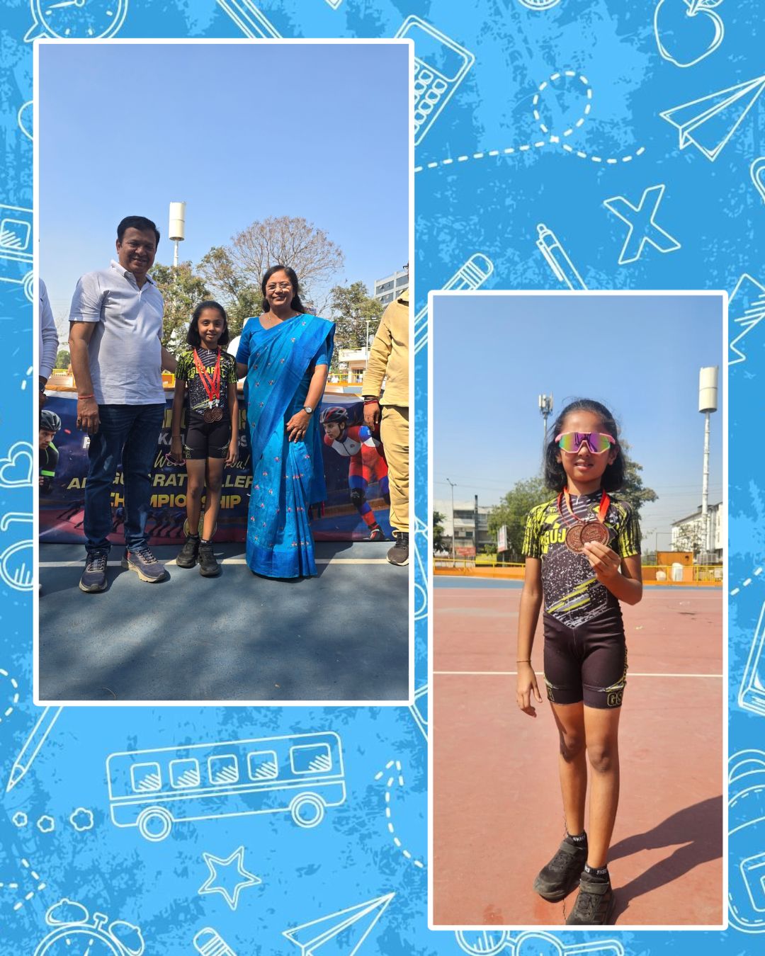 Dhvani Ankit Patel of Grade 1D secured two bronze medals in the Four-Lap and Eight-Lap categories in the All-Gujarat Roller-Skating Championship 2026 held at Unnati Skating Rink, Karelibaugh, Vadodara, on 14th and 15th February 2026.