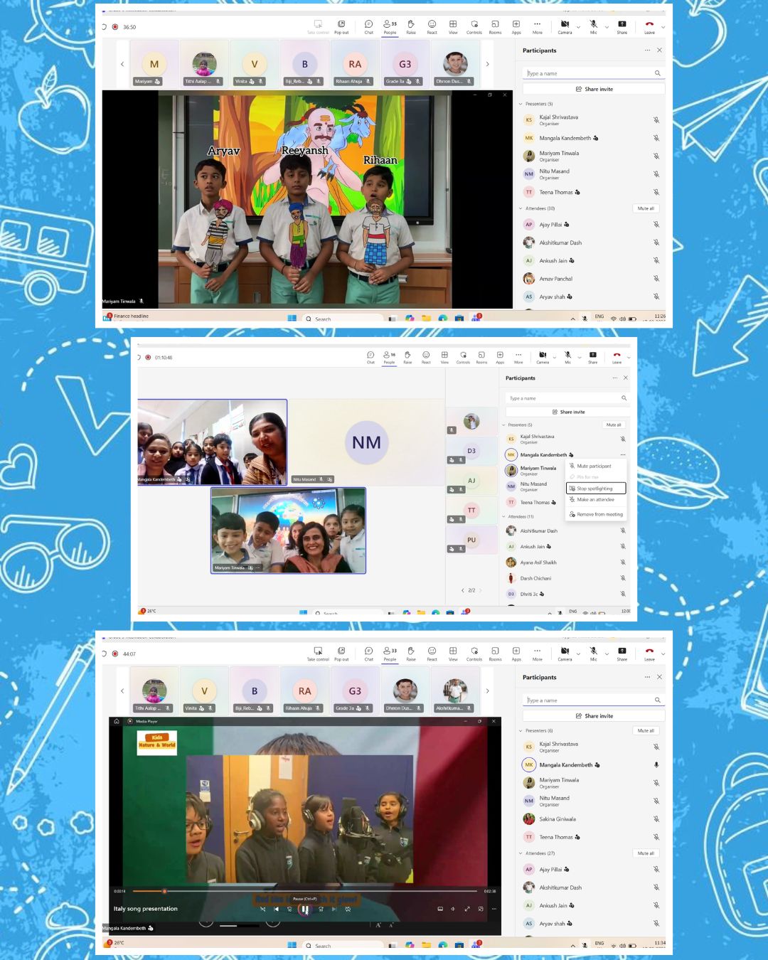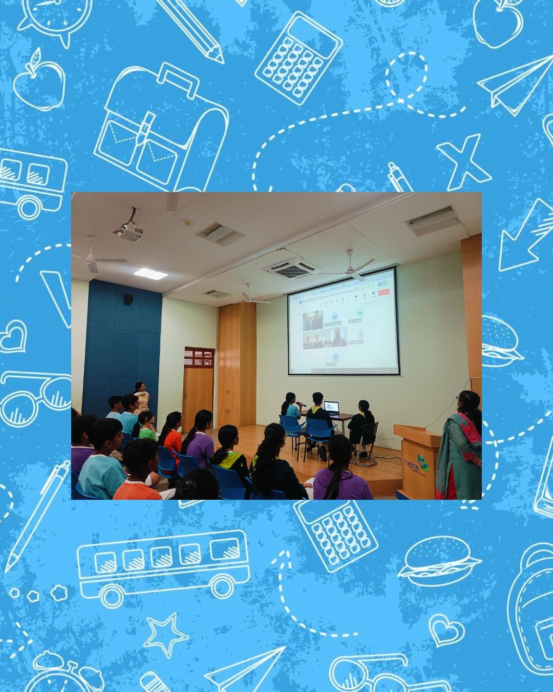 The international collaboration session organized between the 2 schools saw students interacting about effective measures and practices for an environment friendly planet in the form of recycling, using solar panels at school, garbage picking etc. Cygnites of Grade 7 shared their padlet presentations, e-posters to put forth their viewpoints. A highly informative and enriching session for everyone.