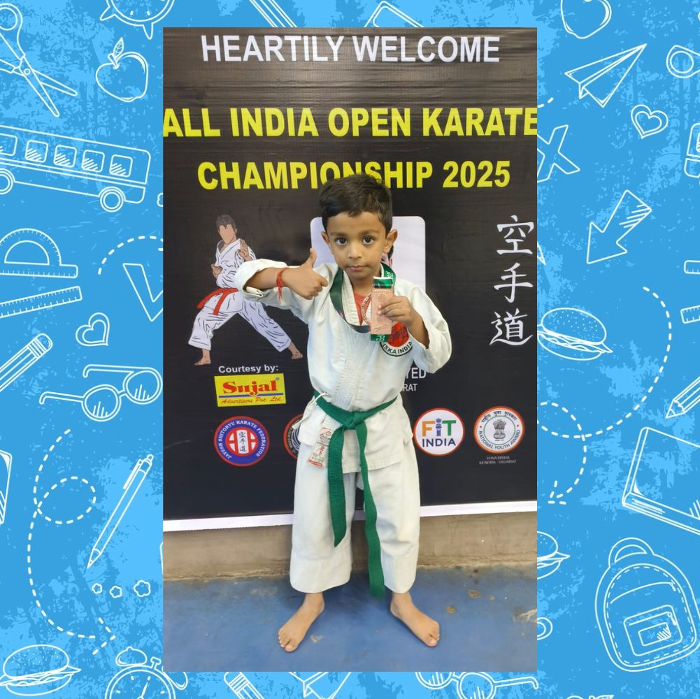 Kyna Khemani of Grade 2A participated in the All India Open Karate Championship – 2025, held on 25th December 2025, organised by the Jayesh Shitoryu Karate Federation and Shotokan International Karate Do Organisation India.