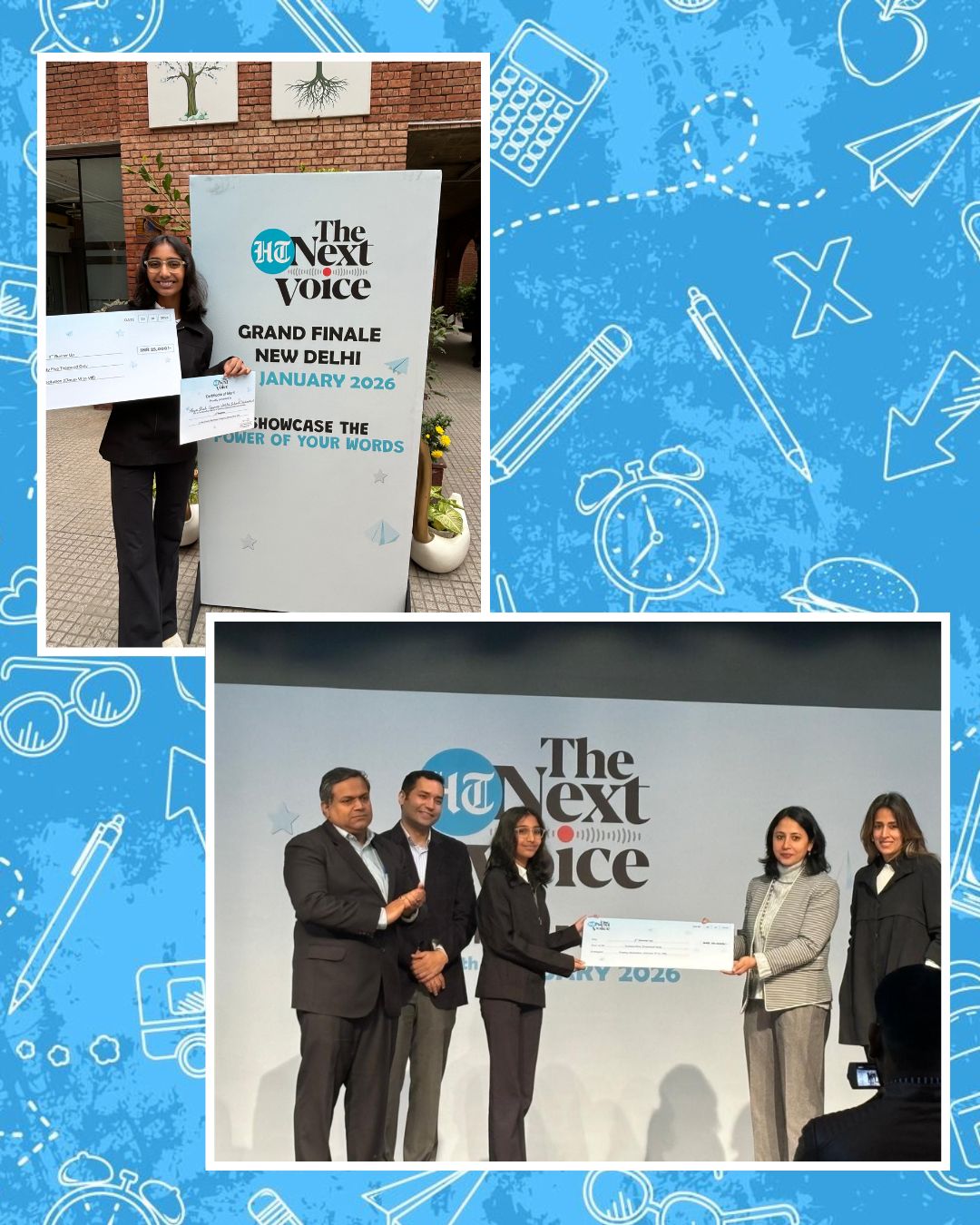 Hiya Shah of Grade 6D has secured the 3rd Prize in the prestigious Hindustan Times – “The Next Voice” National Level Competition held on 29th January in New Delhi. She represented Gujarat with a poem on the topic “Right to Learn, Right to Dream.”