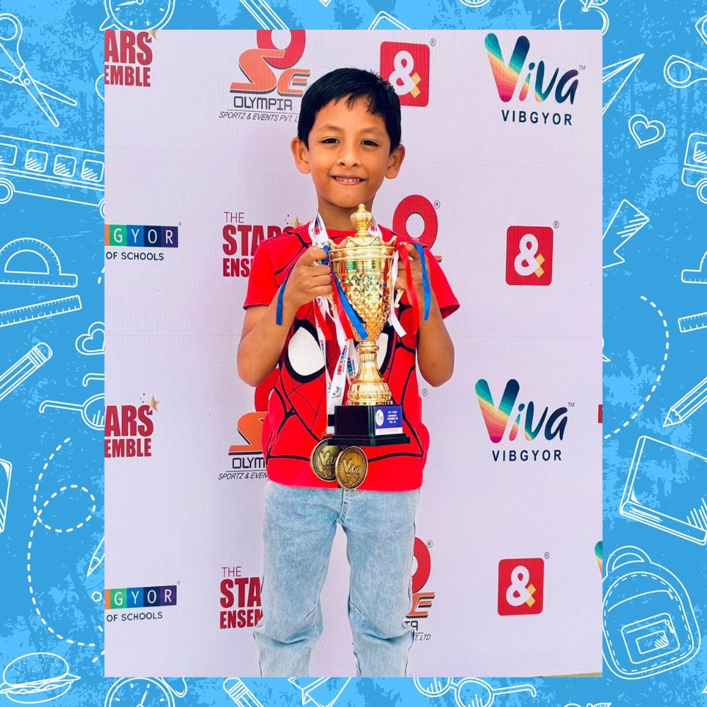 Dhvani Ankit Patel of Class 1-D and Foram Ankit Patel of Grade 1-B participated in the Under-8 age group at the 17th Vibgyor Viva Inter-School Skating Competition 2025–26 and have won Silver and Bronze medals, respectively, in the competition.