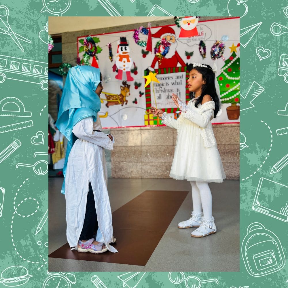 The students were dressed in festive traditional Indian attire. The session started with a prayer followed by a live skit, dance and songs by the students of Grade 1 to 3. The teachers too put up a skit to depict the importance of the festival. The students thoroughly enjoyed the program- a real source of joy and inspiration for the children.